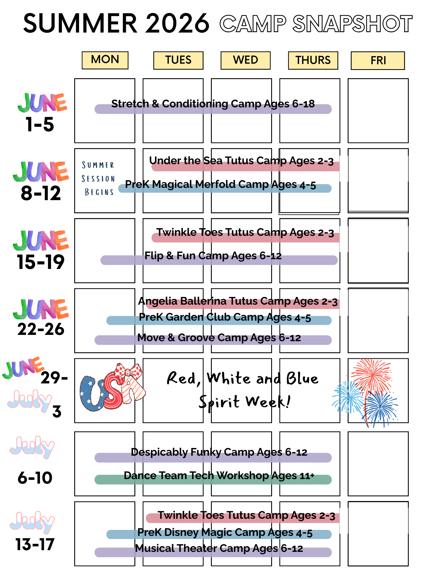 Enroll now with no registration fee to save your spot. ALL camps will be charged in full April 1, 2026 and are NON-REFUNDABLE. Anyone registering after April 2nd will be billed immediately for summer camps.