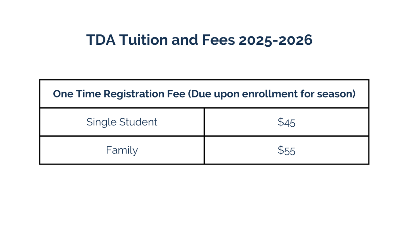 • TDA billing is based on annual tuition and split into equal monthly payments. Therefore, tuition is the same each month regardless of missed classes/holidays.